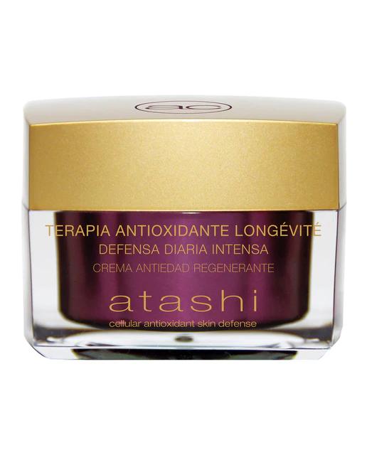 La Crema Antiedad Regenerante Antioxidante Longévité Atashi es una alta dermocosmética farmacéutica hipoalergénica, formulada con células madre vegetales totipotentes, derivadas de algunas de las plantas más extraordinarias del planeta. Esta crema es ideal para pieles sensibles, reactivas o con tendencia atópica, ya que corrige arrugas en número y profundidad, proporcionando firmeza a la piel a partir de los 30 años.